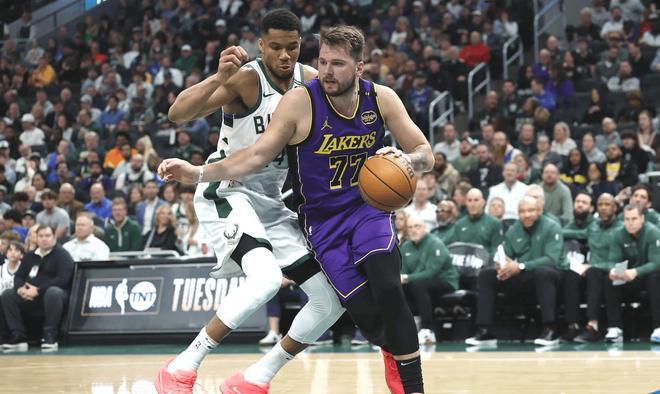 勒布朗·詹姆斯缺阵也无妨,湖人卢卡·东契奇对阵雄鹿展现统治力